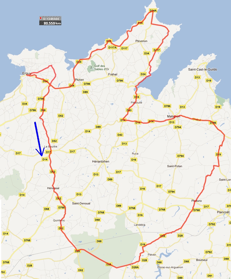 80,6Kms :ERQUY - LES HOPITAUX - LA BOUILLIE - HENANSAL - QUINTENIC - ST AUBIN - vers LANDEBIA - ST SYMPHORIEN - PLUDUNO - LA CROIX AUX MERLES –D786 MATIGNON - MONTBRAN - PLEBOULLE - PORT NIEUX - FORT LA LATTE - CAP FREHEL - Les SABLES d'OR - ERQUY |