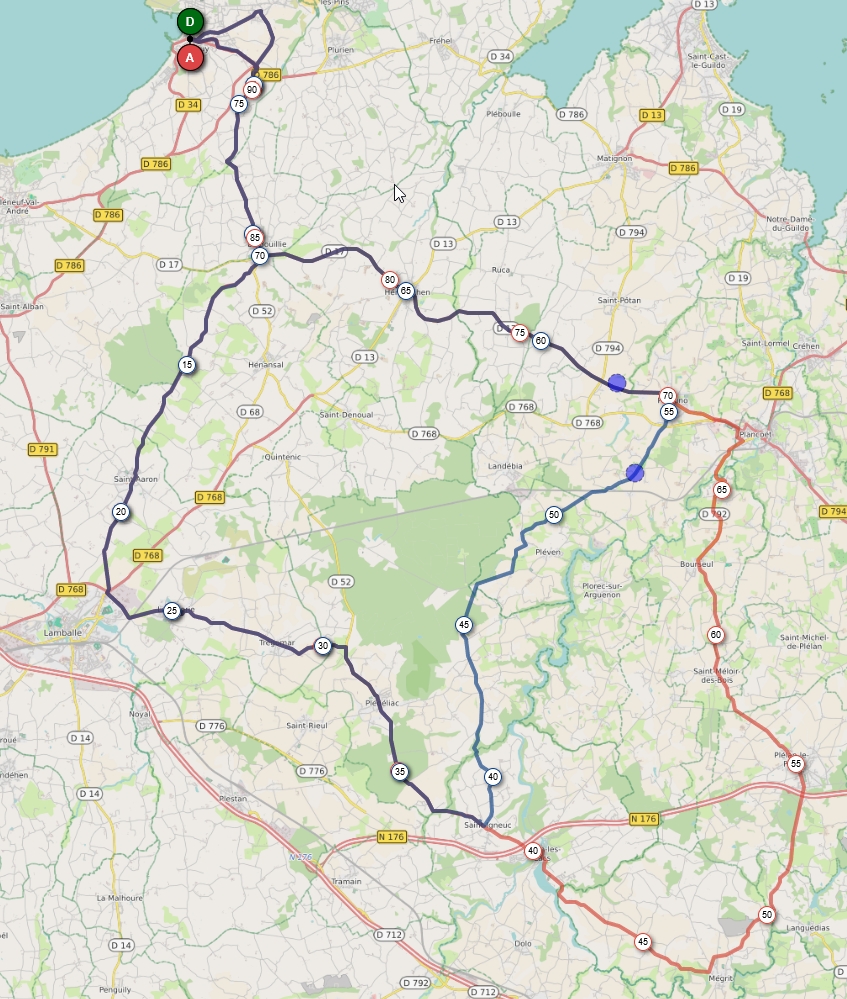 93,2 Km référence :1589100 : ERQUY- LES HOPITAUX - LA BOUILLIE - ST AARON - LAMBALLE - LA POTERIE –TREGOMAR – PLEDELIAC - ST IGNEUC - JUGON - MEGRIT-PLELAN le petit - BOURSEUIL - PLANCOET – PLUDUNO - HENANBIHEN - LA BOUILLIE - LAUNAY - ERQUY 78.8 Km référence :1589107: ERQUY- LES HOPITAUX - LA BOUILLIE - ST AARON - LAMBALLE - LA POTERIE – TREGOMAR – PLEDELIAC - ST IGNEUC – ST ESPRIT des bois – ST SYMPHORIEN - PLUDUNO – HENANBIHEN - LA BOUILLIE - LAUNAY - ERQUY