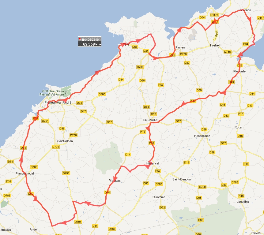 PLEBOULLE - MONTBRAN - ST JEAN – LA BOUILLIE - HENANSAL - LAUNAY - ST AARON – vers ANDEL- D59 - PLANGUENOUAL - DAHOUET - PLENEUF - ST PABU – ERQUY |