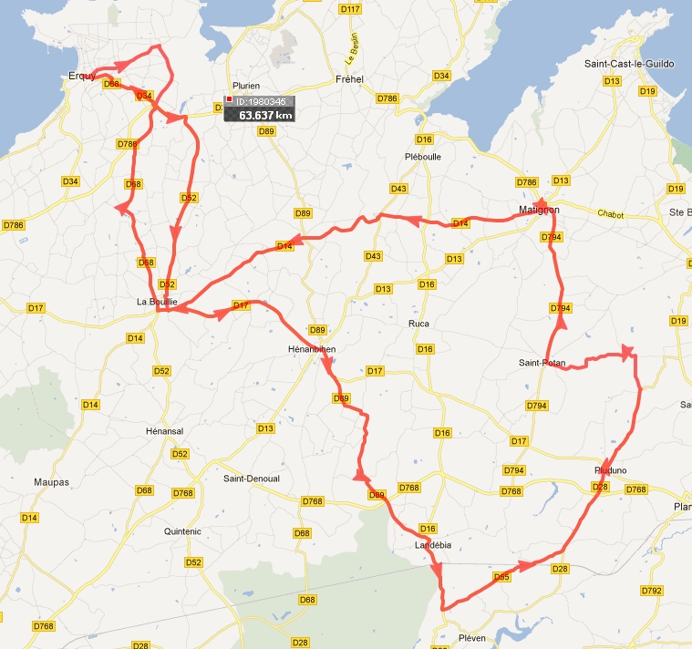 SYMPHORIEN - PLUDUNO – vers La Croix aux merles - LA ROUGERAIS - ST POTAN - MATIGNON - MONTBRAN - ST JEAN - LA BOUILLIE - LES JEANNETTES – ERQUY |