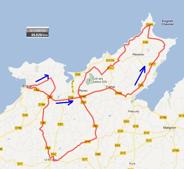 49,6 Kms : ERQUY - LES HOPITAUX - FREHEL - ST AIDE - TRECELIN - FORT LA LATTE - CAP FREHEL -