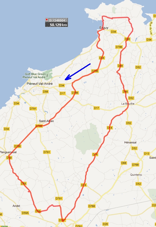 50,1 Kms : ERQUY – LA COUTURE - ST ALBAN – PLANGUENOUAL - LAMBALLE – ST AARON - LA BOUILLIE - LES HOPITAUX – Tu es Roc - ERQUY