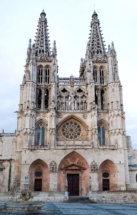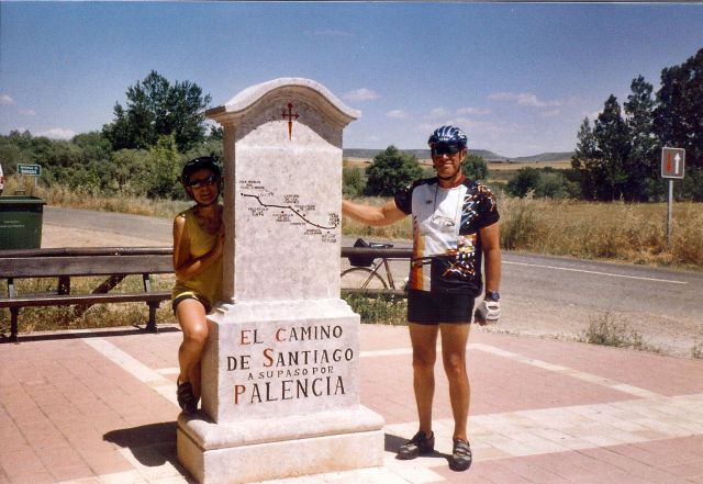 Nous commençons notre journée à 8H et attaquons le col de la Pedraja situé à1130m d’altitude, traversant au passage Villafranca Montes, puis nous descendons vers Burgos que nous atteignons vers 10H. C’est une belle ville avec des portes monumentales à l’entrée, et surtout une superbe cathédrale tant extérieurement qu’intérieurement ! la visite dure une heure et ça n’est pas de trop ! Des sculptures métalliques de pèlerins sont disséminées autour de la place centrale. Avec deux autres couples, nous repartons par des pistes cyclables vers Villanueva de Aragona et Villasandino où nous pique-niquons dans la nature. L’après midi, la route est plate et le vent nous pousse, nous sommes en Castille, céréales et coquelicots s’entremêlent dans les champs. Arrêt à Boadilla del camillo dans une auberge très agréable où nous dégustons une bière délicieuse à l’ombre. 6Km après, nous arrivons à Fromista ; nous sommes dispatchés dans trois hôtels et accueillis par des dizaines de cigognes claquant du bec, nichées sur les toits de trois églises imposantes. Petite visite avant le repas; et dégustation d’une excellente sangria préparée spécialement pour les amis et nous dans un bar de la ville.